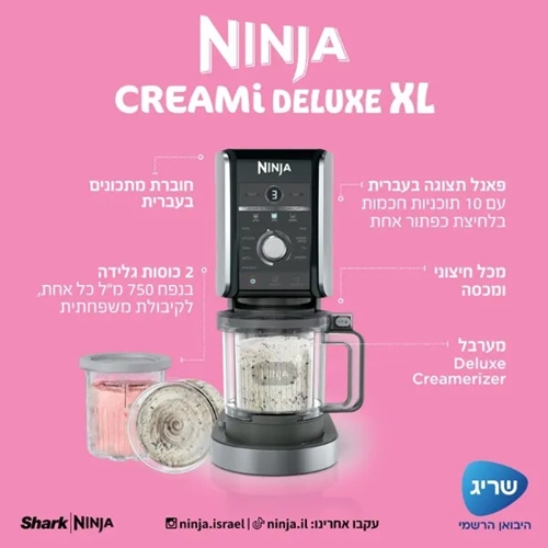 אצלנו, קניות באינטרנט של מכונת גלידה Creami Deluxe XL דגם Ninja NC503 שוות לך פי אלף!