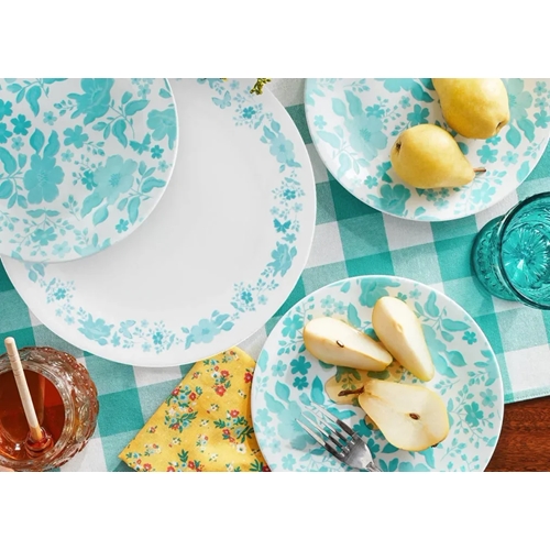 דגם Pioneer Woman Teal משלב פרחים ועלים בגוון תכלת קייצי ושמח שהופכים את הסט לתוספת משמחת על שולחן האוכל שלכם.