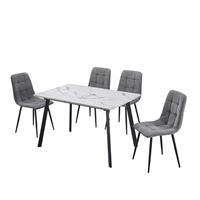 שולחן בגוון שיש לבן + כיסאות בגוון אפור