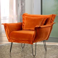 כורסא והדום בבד קטיפתי דגם לילי כתום LEONARDO