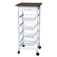 עגלת שירות מעץ 4 קומות +מגירת אחסון בצבע לבן