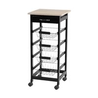 עגלת שירות מעץ 4 קומות +מגירת אחסון בצבע שחור