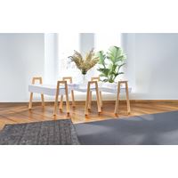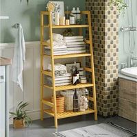מעמד מדפים מעל מכונת הכביסה בשילוב מדפי עץ