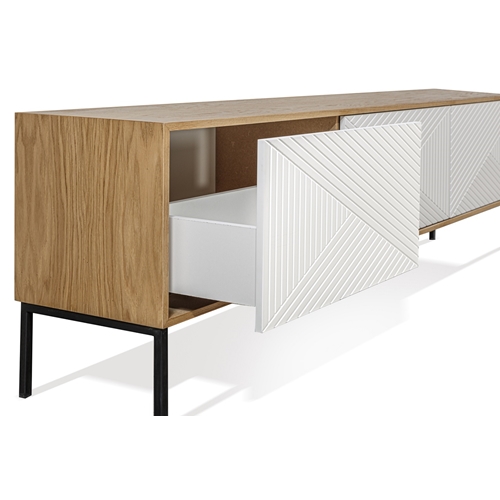 המזנון עשוי MDF עם מסגרת בציפוי פורניר. שתי מגירות בצדדים