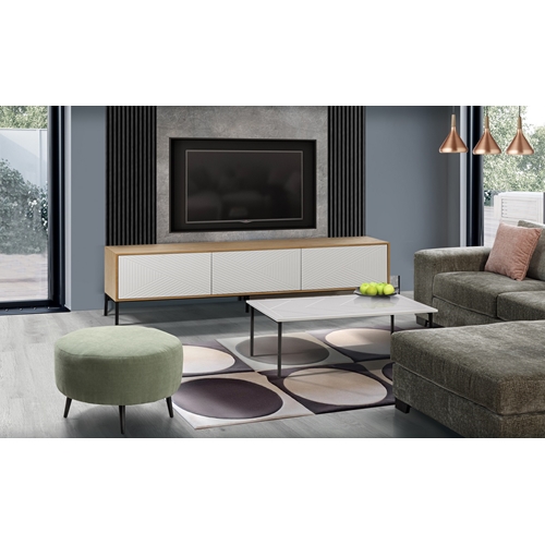 סט מזנון ושולחן סלוני עשוי MDF ורגלי ברזל גבוהות דגם פיתגורס LEONARDO