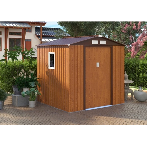הוא מחסן דקורטיבי בצבע דמוי עץ צבוע בתנור עם אחריות לחלודה ולשמירת הצבע ומקום רב לאחסון.