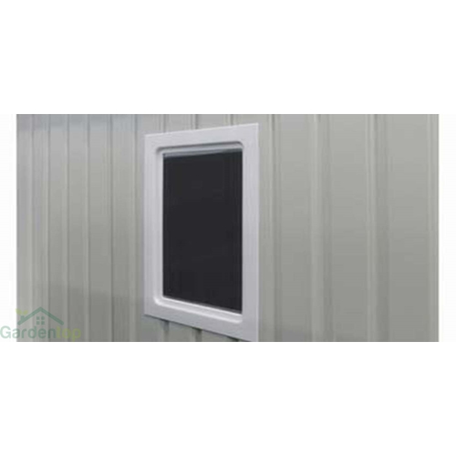 למחסני המתכת מבית Garden Top זוג דלתות הזזה על מסילה פנימית ו-4 פתחי אוורור ובעלי חלון ייחודי.