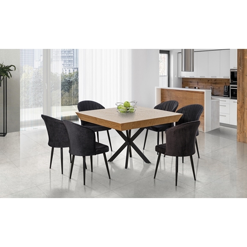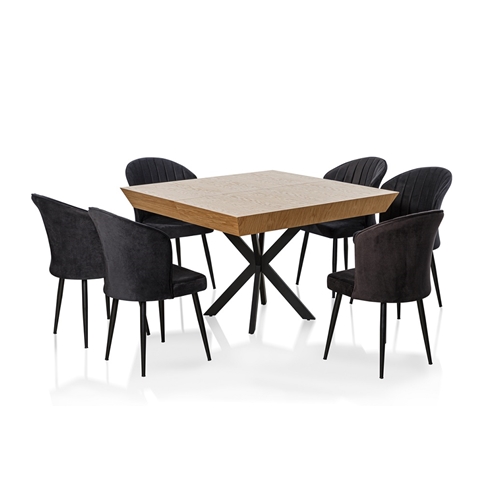 - פינת אוכל מרובעת נפתחת מעץ עם רגלי ברזל דגם מידן LEONARDO