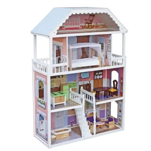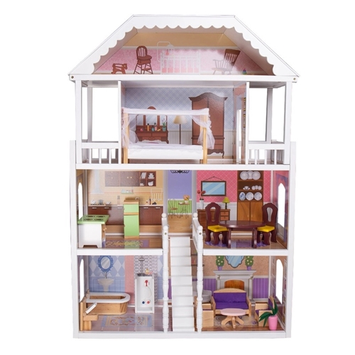 בית בובות מעץ שלוש קומות וקומת גג דגם אביגיל
