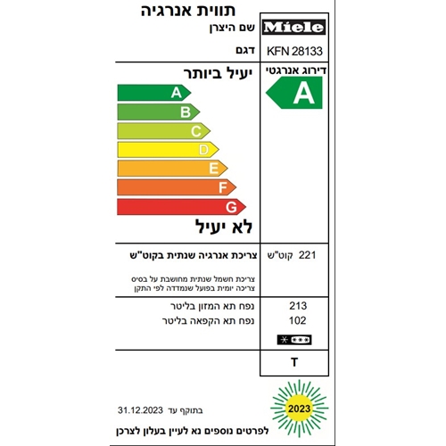 מקרר מקפיא תחתון בנפח כללי 310 ליטר KFN28133 MIELE - מידע נוסף