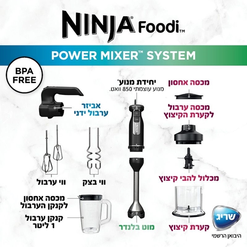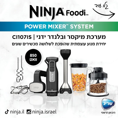 מערכת מיקסר ובלנדר ידני דגם CI107IS נינג'ה NINJA - מידע נוסף