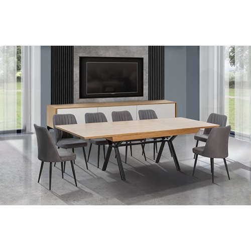 גימור עץ אלון בהיר, השולחן נפתח עד לכ-2.80 מ’.