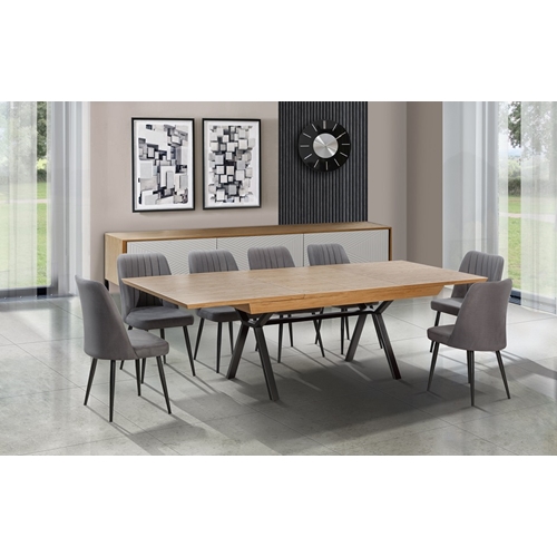גימור עץ אלון בהיר, השולחן נפתח עד לכ-2.80 מ’.