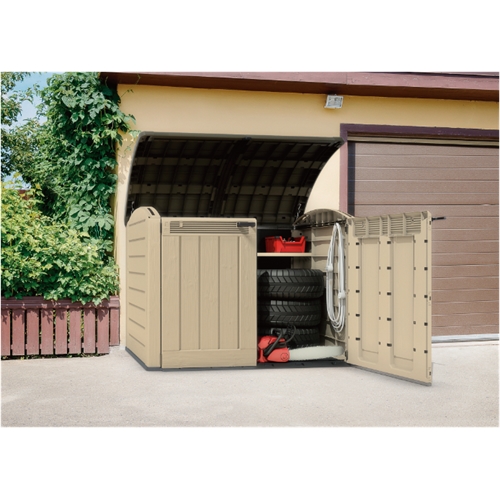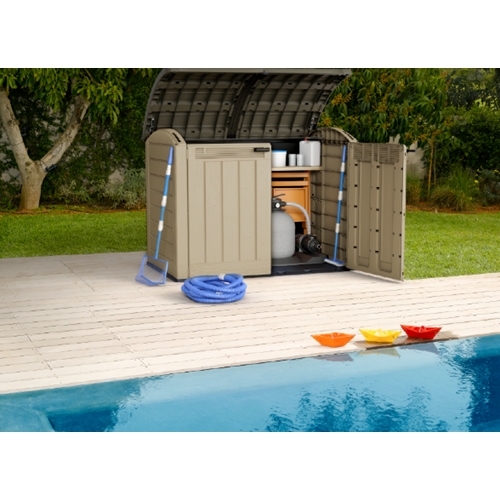 למחסן סף משופע המאפשר אחסון נוח וקל, פתרון אידיאלי לאחסון חוץ של מגוון רחב של פריטים כמו אופניים, גריל או משאבת בריכה.