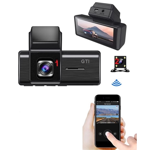 2 מצלמות צבעוניות לצילום רציף – קדמית 170 מעלות + מצלמה אחורית 130 מעלות ניתקת למיקום בכל אזור ברכב.