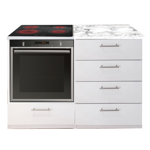 - אי אחסון למטבח משולב תנור וכיריים בילט אין פלטה עליונה דמוי שיש לבן מבית אביעם