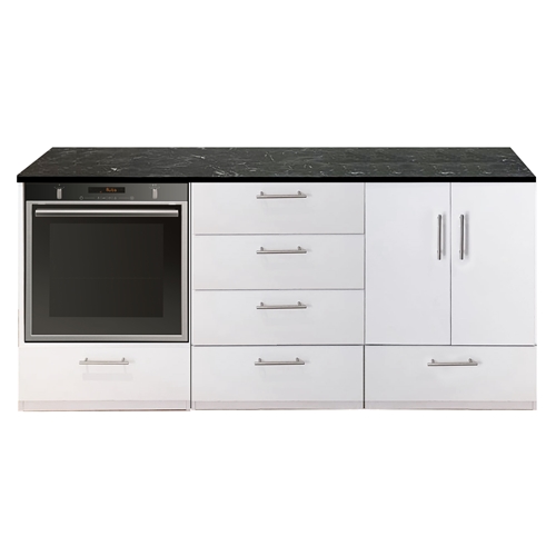 - אי אחסון ענק למטבח משולב תנור בילט אין צבע שחור דמוי שיש