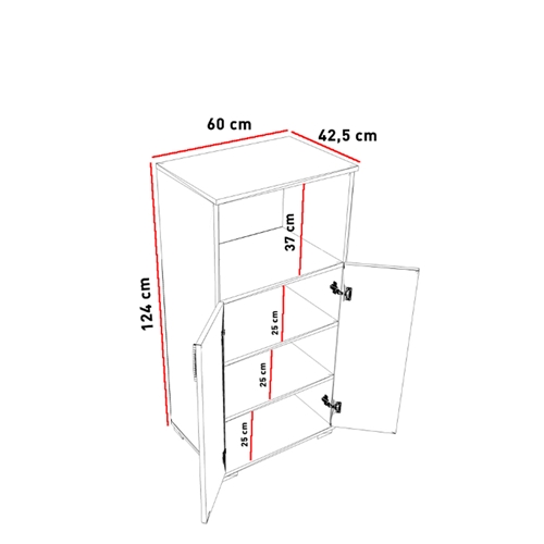 בעלת 3 תאי אחסון הכולל 2 דלתות.