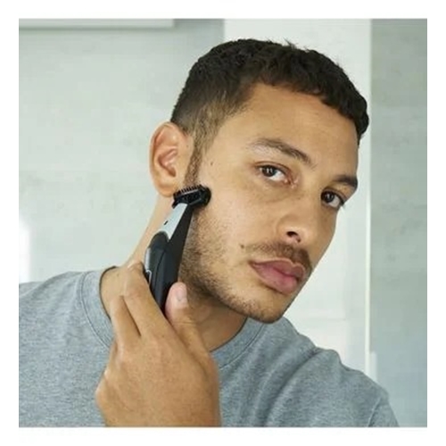 מכשיר אלחוטי בעל ביצועים גבוהים עם להב העשוי מליתיום יון העוקב אחר קווי המתאר של הפנים לצורך גילוח וקיצוץ הזקן בצורה יעילה וחלקה