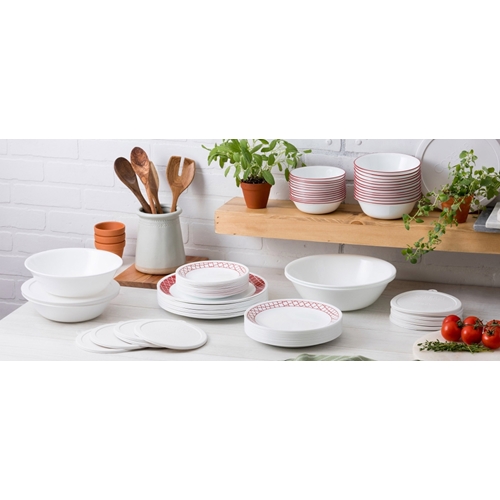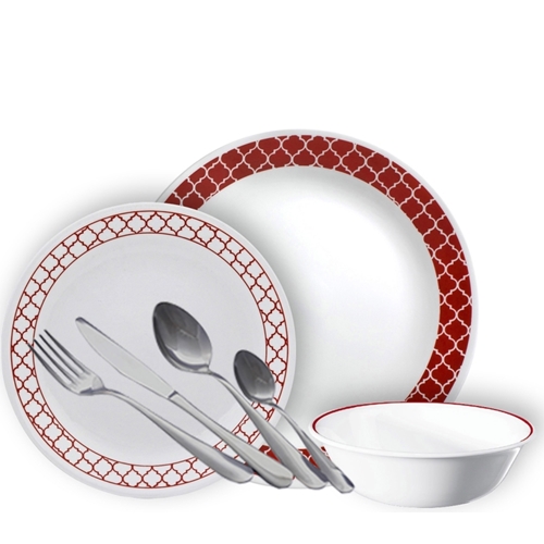 - סט 84 חלקים ל 12 סועדים הכולל צלחות קורל 36 חלקים דגם Crimson Trelis + סכו"ם 48 חלקים TWIST