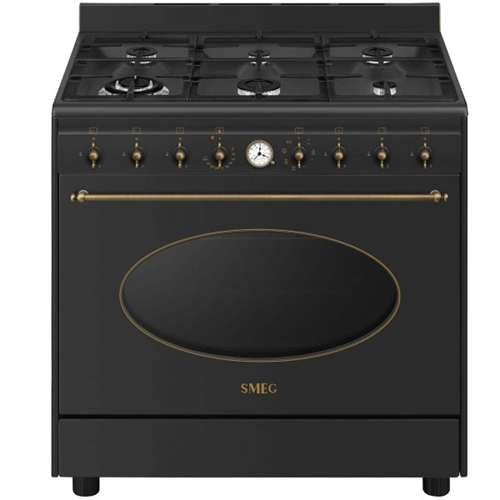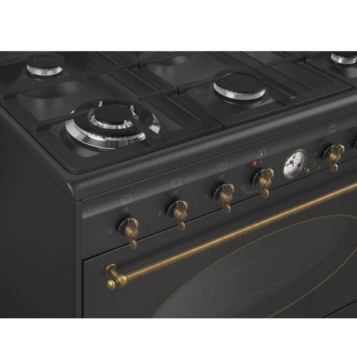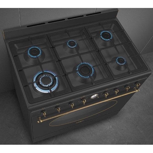 - תנור רוחב 90 ס"מ משולב כיריים גז דגם Smeg CO96GMA9 צבע שחור פחם