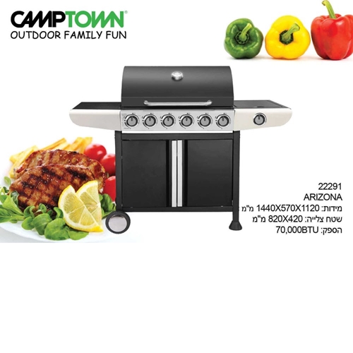 - גריל גז דגם אריזונה 6 מבערים + כירת צד CAMPTOWN ARIZONA