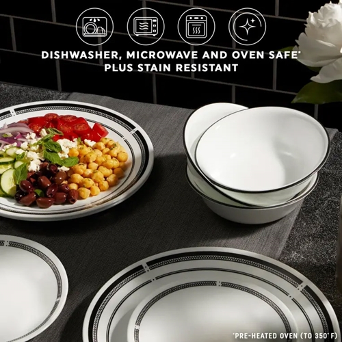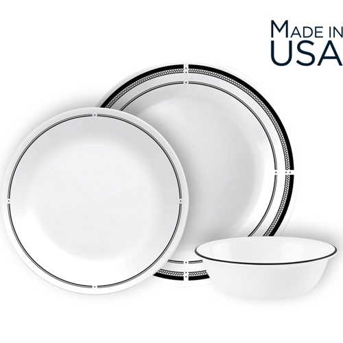 - סט צלחות קורל 18 חלקים ל 6 סועדים דגם Brasserie תוצרת קורנינג ארה"ב