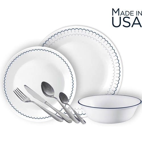 דגם Caspian + סכו"ם 48 חלקים TWIST תוצרת קורנינג ארה"ב הצלחות הדקות והחזקות בעולם!