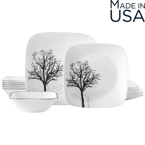 - סט צלחות קורל 12 חלקים ל 4 סועדים דגם Timber Shadows תוצרת קורנינג ארה"ב – הצלחות הדקות והחזקות בעולם!