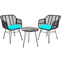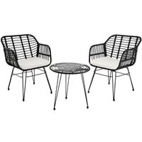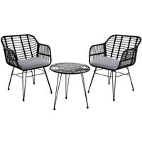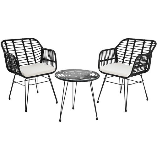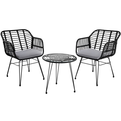 פינת ישיבה מפנקת בעיצוב מודרני משילדת ברזל בשילוב ראטן בצבע שחור למראה יוקרתי.