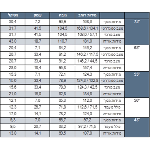 מעמד שולחני תואם ( מצבים משתנים בהתאם לגודל המסך ( לא כולל 43/50 )