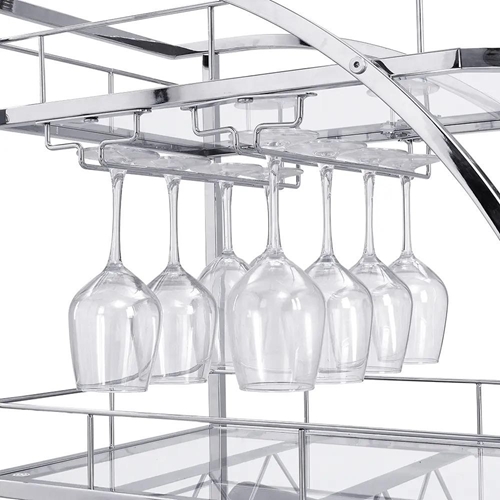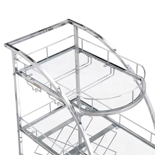 בר עגלת שירות עם גלגלים, מתקן אלגנטי מתכתי בשלושה רמות.