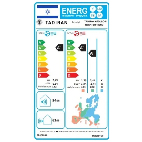מזגן עילי APOLLO INV N-140NG תדיראן TADIRAN - מידע נוסף