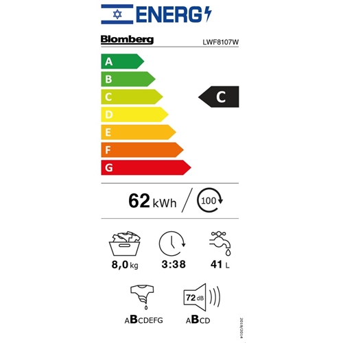 מכונת כביסה פתח חזית 8 ק"ג BLOMBERG LWF8107W - מידע נוסף