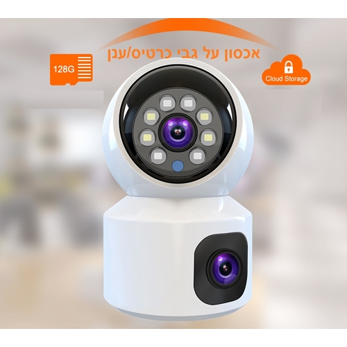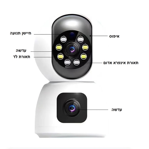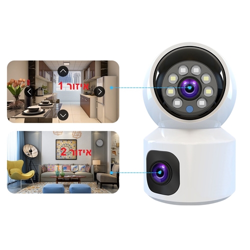 - מצלמת אבטחה אלחוטית ממונעת עם 2 עדשות לכיסוי מושלם