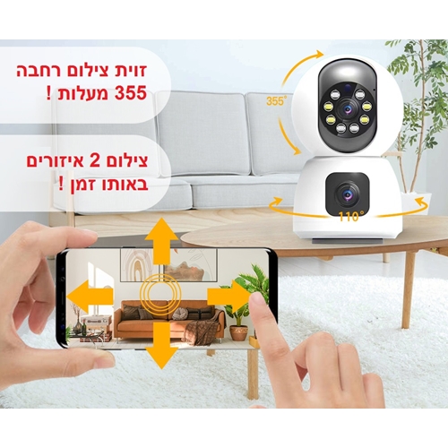 מצלמת IP אלחוטית דו כיוונית ממונעת 360* +מצלמה קבועה לצפיה מהטאבלט / סמארטפון.
