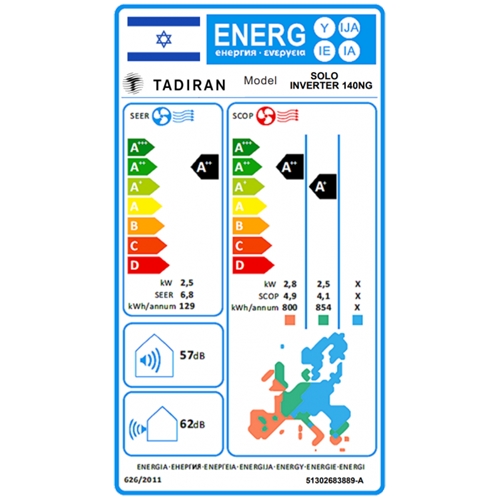 מזגן עילי SOLO INV 140NG תדיראן TADIRAN תדיראן - מידע נוסף