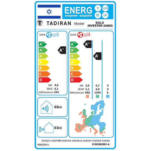 מזגן עילי SOLO INV 240NG תדיראן TADIRAN תדיראן - מידע נוסף