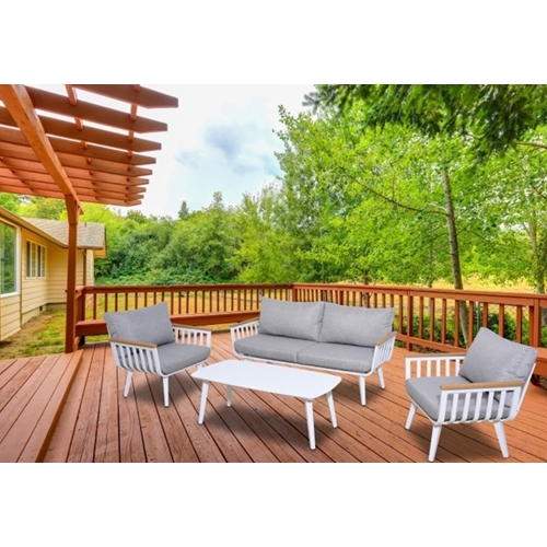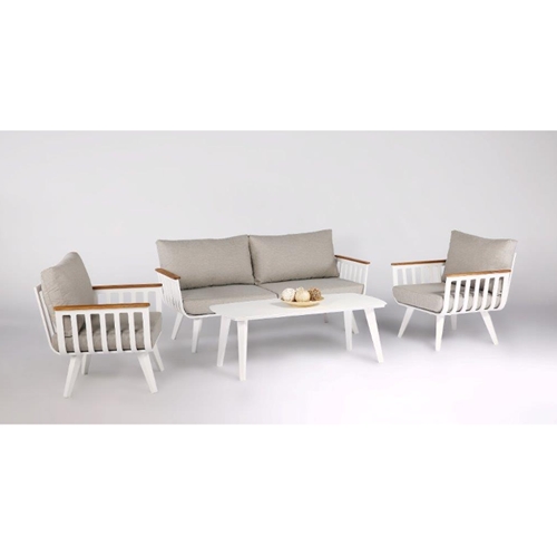 הסט כולל שולחן קפה, שני כורסאות וספה דו מושבית, המתאימים לישיבה ונופש נעימים באוויר החוץ.