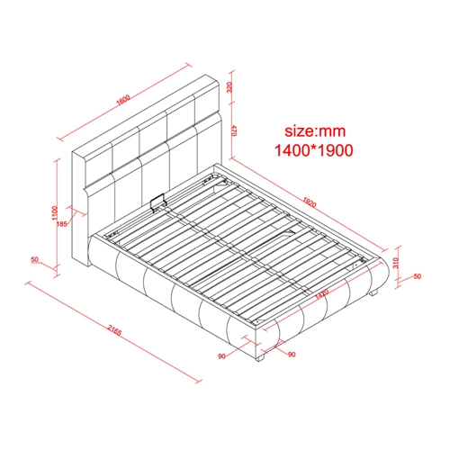 המיטה מתאימה למזרון 140/190 ס"מ או 160/200 ס"מ (בתוספת תשלום)
