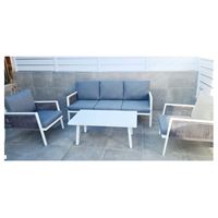 כל הריהוט בסט, כולל השולחן, עשוי מאלומיניום המספק עמידות לתנאי חיצוניים וארכיון לאורך זמן.