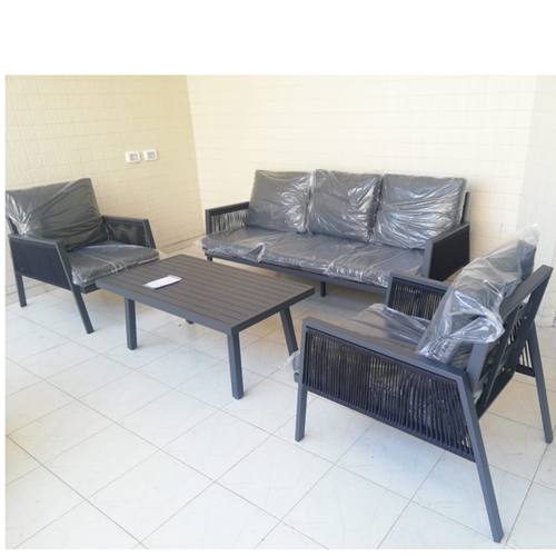 - מערכת ישיבה מאלומיניום כוללת כורסה תלת מושבית + 2 כורסאות ושולחן