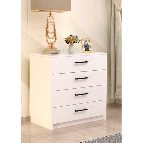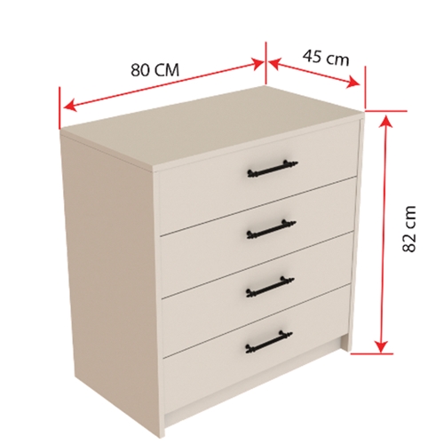 השידה לבית היא מוצר מעוצב המכיל 4 מגירות ועשוי מחומר סיבית דחוס המצופה מלמין.