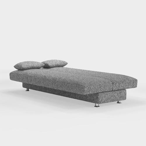 ספה נפתחת למיטה, כוללת ארגז מצעים וזוג כריות נוי.