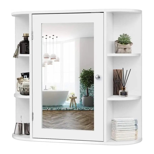הוא מספק פתרון אחסון חכם, משלב מדפים פתוחים ודלת מראה, ונבנה מחומרים איכותיים כדי להבטיח עמידות לאורך זמן.