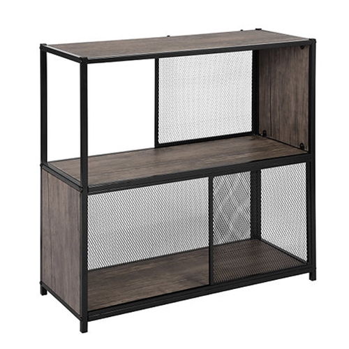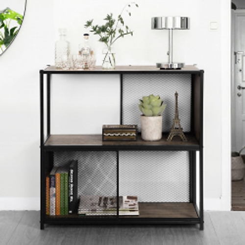 השידה משולבת רשתות גב לתמיכה ודלת הזזה יחידה העשויות מתכת שחורה המעניקות לשידה מראה ייחודי ומעוצב.