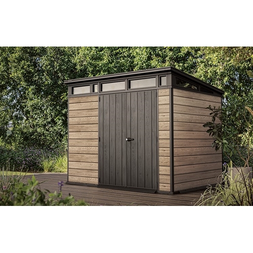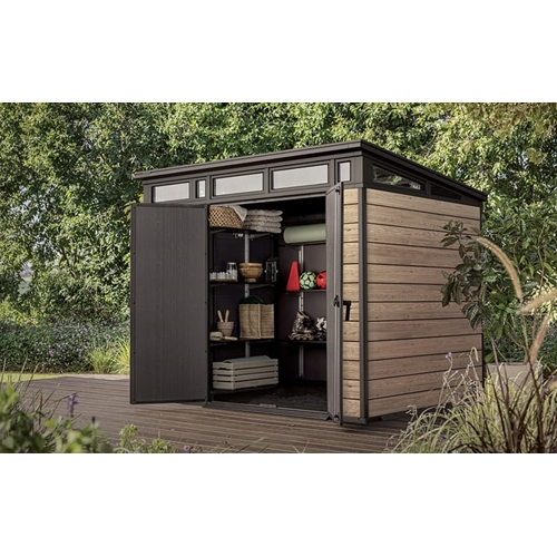 מחסן גינה דקו פנט מסדרת Signature Collection סדרת מחסנים בפיתוח מהפכני מבית כתר, המעניקים ערך מוסף עיצובי למחסן בנראות עץ טבעי.