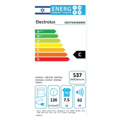 מייבש כביסה 7.5 ק"ג דגם Electrolux EDV754H3WBM - מידע נוסף