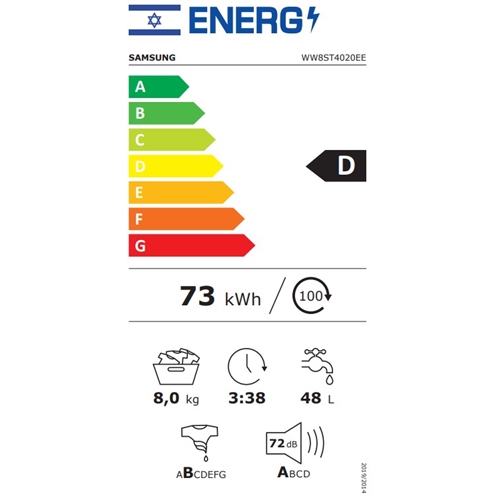 מכונת כביסה 8 ק"ג דגם SAMSUNG WW8ST4020EE סמסונג - מידע נוסף