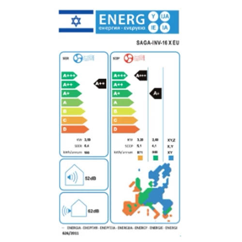 מזגן עילי אינוורטר SAGA-INV-16 X EU סאגה - מידע נוסף